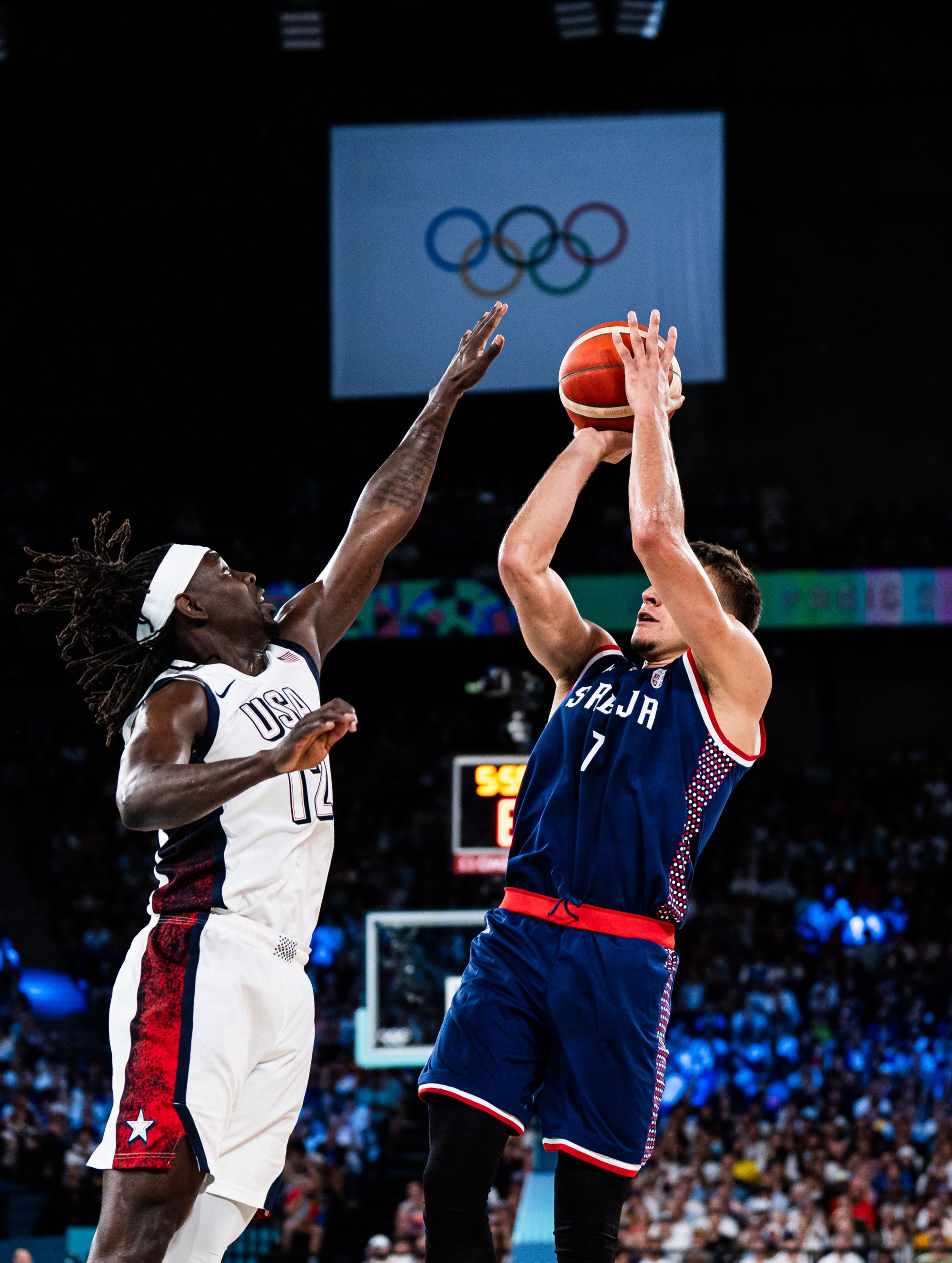 Perché la Serbia vicecampione del Mondo, dopo aver sofferto, analiticamente studiato ed imparato dall’esuberanza di Team USA nel debutto durante la fase a gironi, dove la squadra di Svetislav Pesic aveva perso di 26 punti (110-84), si è presentata alle semifinali del torneo di pallacanestro maschile a Parigi 2024 più concentrata che mai. “Sta succedendo davvero?”, devono essersi chiesti in molti al +17 serbo (42-25), massimo vantaggio in una partita condotta per 35:12 minuti dai balcanici. Un gap venuto a crearsi dopo un 2+1 di Nikola Jokic, assoluto protagonista per gli sfavoriti di giornata e chiave di volta anche nella sfida inaugurale da parte della sua nazionale: con il tre volte MVP dell’NBA in campo all’esordio, Serbia e Stati Uniti pareggiavano 81-81. Senza il Joker, il parziale si spostava sul 29-3 per la squadra di Steve Kerr. Nella serata parigina di giovedì, lo sforzo è stato decisamente più collettivo: Bogdan Bogdanovic, Marko Guduric e uno scatenato Aleksa Avramovic hanno detto la propria.