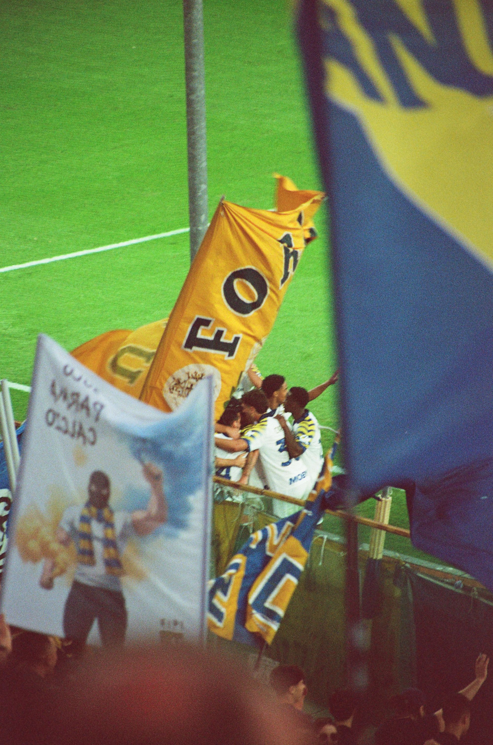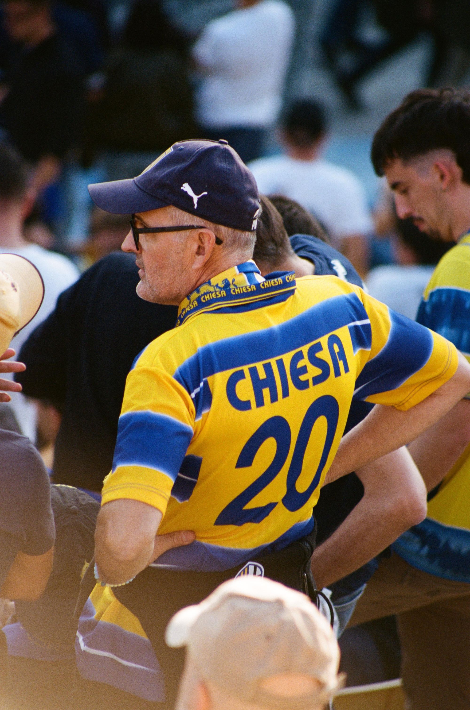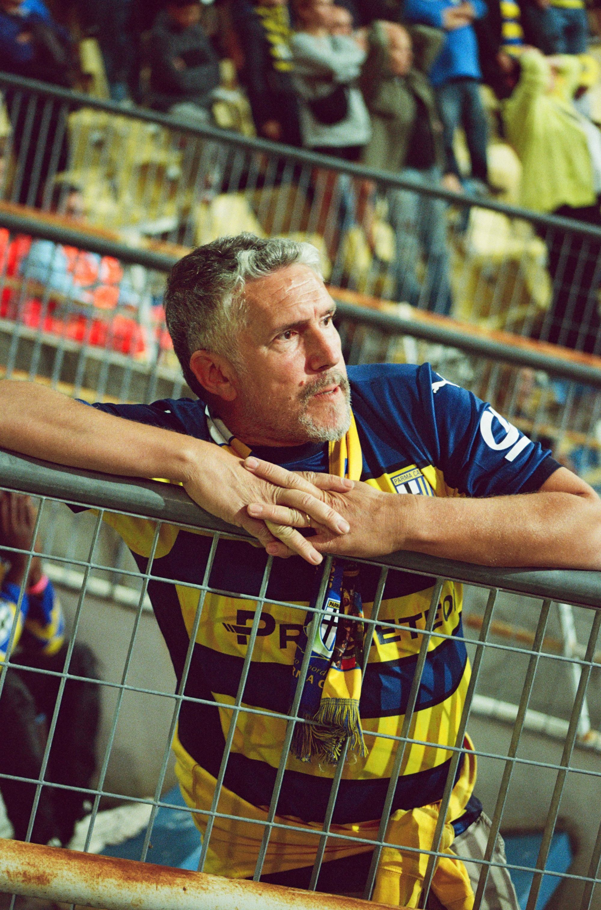 La seconda tappa di questa giornata speciale è stato ovviamente il Tardini, lo stadio di casa del Parma. Un impianto da 22mila posti a sedere che sorge nel cuore della città, incastonato tra decine di palazzi che in alcuni punti si affacciano direttamente sul campo da gioco. Ed è qui che la tradizione si reinventa, ancora una volta. Per capire quanto sia ricca la storia del Parma vi basta fare un giro sugli spalti e buttare un occhio alle maglie indossate dai tifosi. Un melting pot estetico in cui convivono serenamente maglie bianche con la croce nera, maglie a bande orizzontali gialloblu, maglie da portiere e ovviamente l’iconica maglia bianca nella versione originale. E poi c’è la tradizione che si reinventa nella figura di un bambino che indossa il nuovo kit PUMA ma personalizzato con il numero 9 di Hernan Crespo, una leggenda del club. A conferma che la nostalgia fine a sé stessa è una trappola. La decisione di riproporre kit storici deve partire da un motivo più grande e a Parma significa tramandare di generazione in generazione la storia del club così che il patrimonio sportivo ed estetico non vada mai dimenticato.