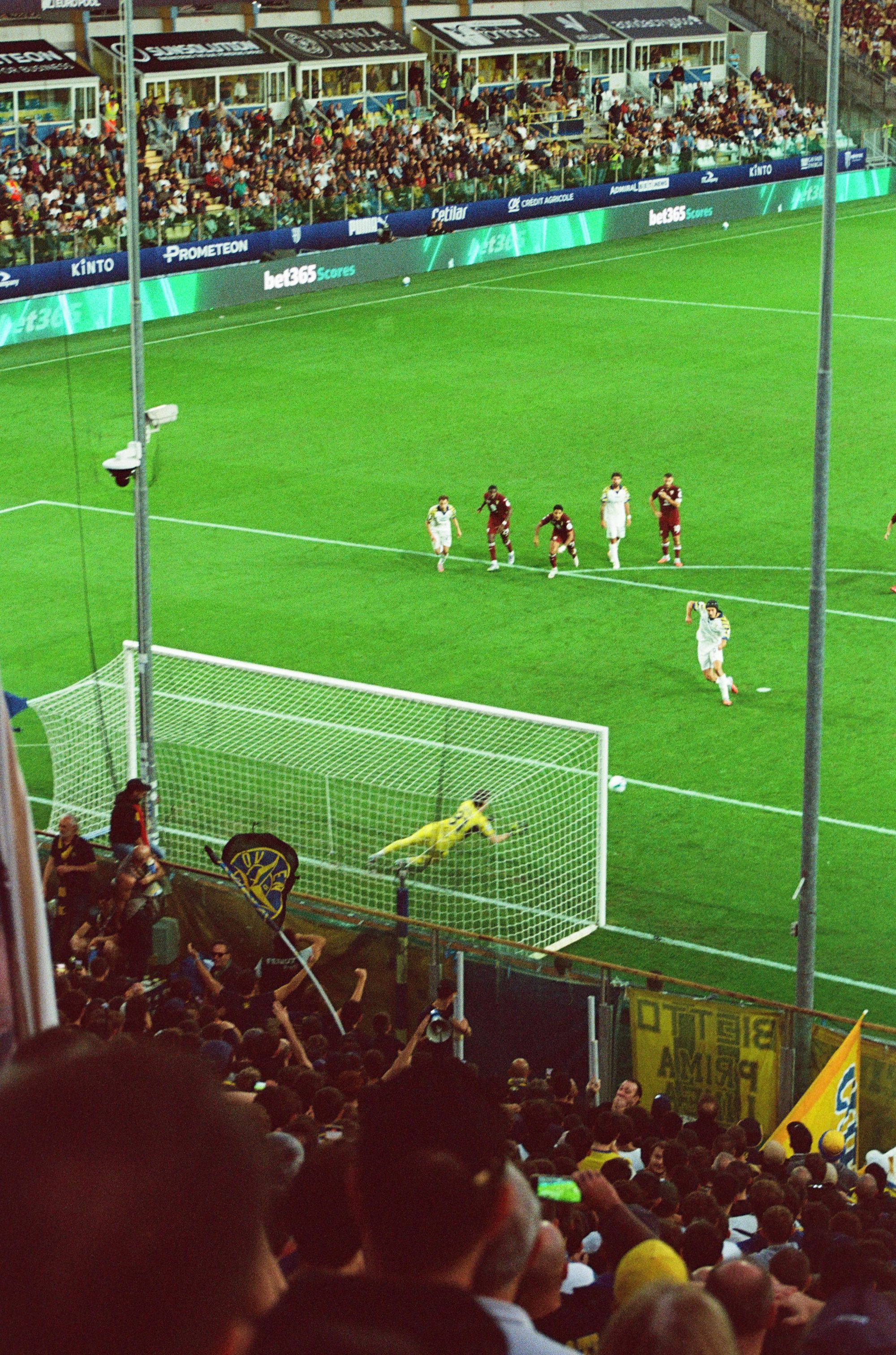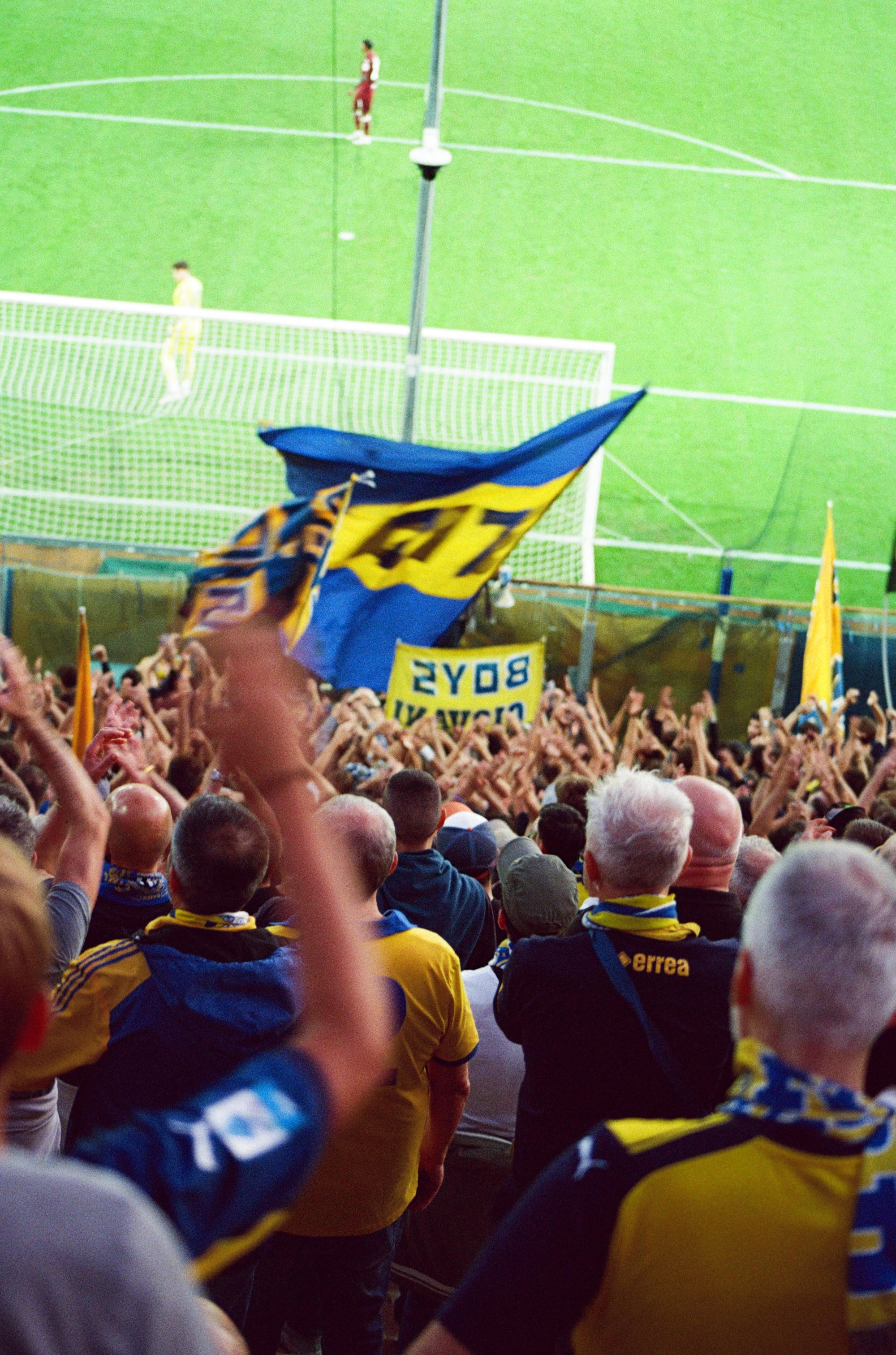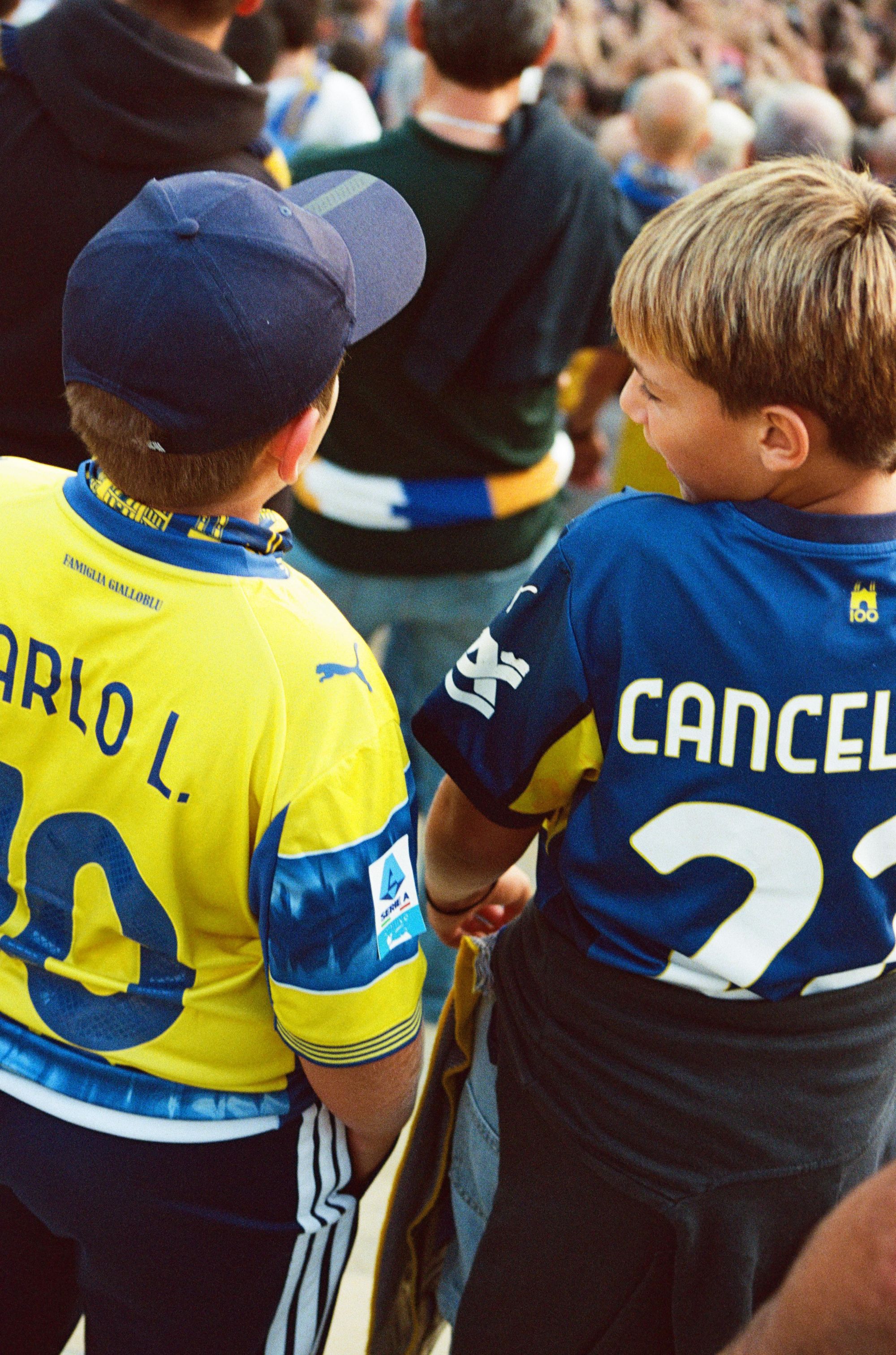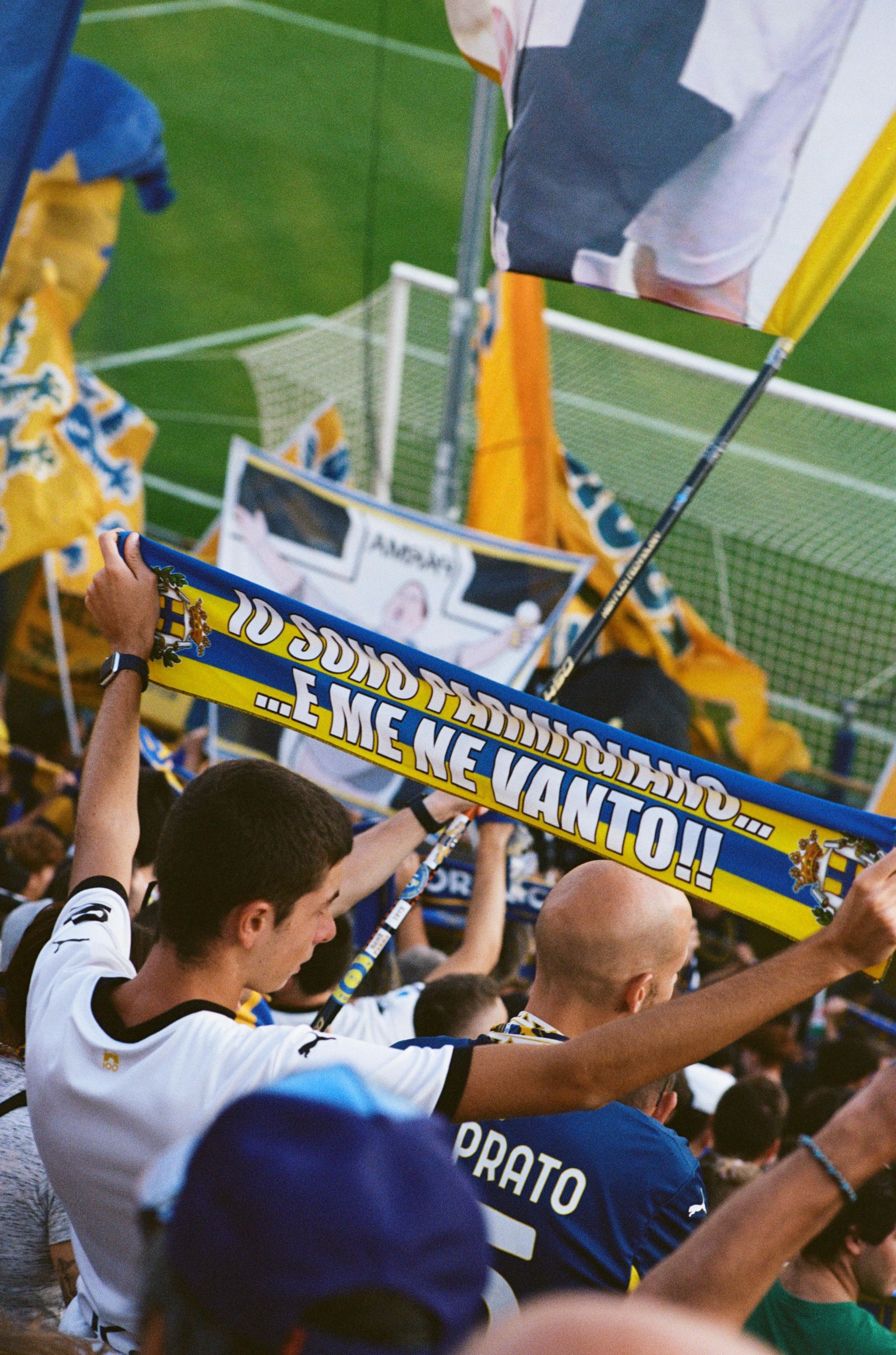 La seconda tappa di questa giornata speciale è stato ovviamente il Tardini, lo stadio di casa del Parma. Un impianto da 22mila posti a sedere che sorge nel cuore della città, incastonato tra decine di palazzi che in alcuni punti si affacciano direttamente sul campo da gioco. Ed è qui che la tradizione si reinventa, ancora una volta. Per capire quanto sia ricca la storia del Parma vi basta fare un giro sugli spalti e buttare un occhio alle maglie indossate dai tifosi. Un melting pot estetico in cui convivono serenamente maglie bianche con la croce nera, maglie a bande orizzontali gialloblu, maglie da portiere e ovviamente l’iconica maglia bianca nella versione originale. E poi c’è la tradizione che si reinventa nella figura di un bambino che indossa il nuovo kit PUMA ma personalizzato con il numero 9 di Hernan Crespo, una leggenda del club. A conferma che la nostalgia fine a sé stessa è una trappola. La decisione di riproporre kit storici deve partire da un motivo più grande e a Parma significa tramandare di generazione in generazione la storia del club così che il patrimonio sportivo ed estetico non vada mai dimenticato.