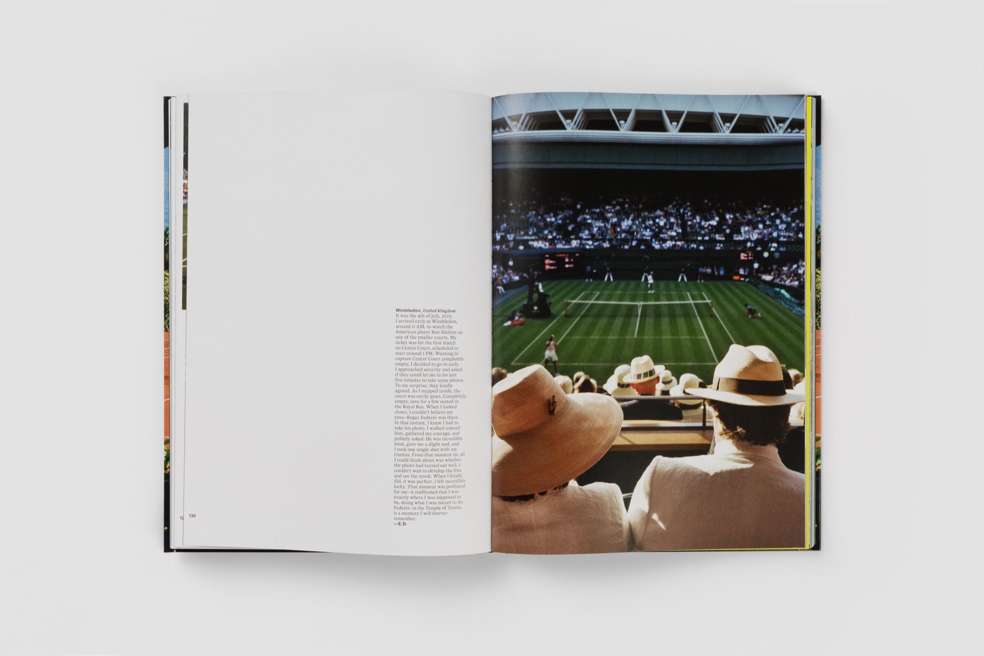 Conosciuto a livello internazionale con il suo alter ego artistico Broken Rackets, Emanuele d’Angelo è una figura di spicco della fotografia tennistica mondiale. Dai campi situati in scenari esclusivi sulle rive cristalline del Lago di Como, alle colline di Los Angeles, residenza di James Goldstein, fino ai leggendari campi in cemento di Central Park a New York, d’Angelo esplora il mondo alla ricerca di luoghi che incarnano sia l’eleganza sia l’essenza più autentica del tennis, fotografando ogni campo che incontra lungo il suo percorso con uno stile prettamente documentaristico, come quello che possiamo ammirare all’interno del suo primo libro fotografico, Paradise Courts, pubblicato dalla casa editrice ERG Media.