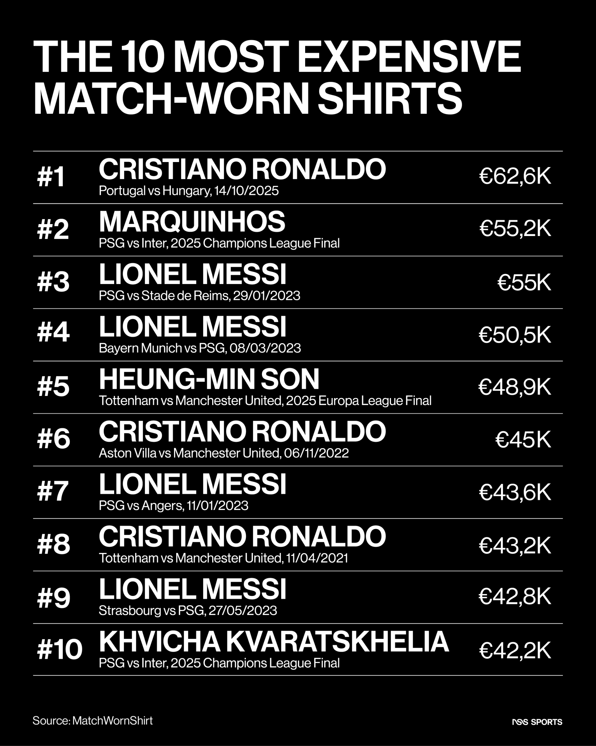 Una cifra spaventosa che però nemmeno si avvicina alla Top 10 delle maglie più costose di sempre battute all’asta da MatchWornShirt: