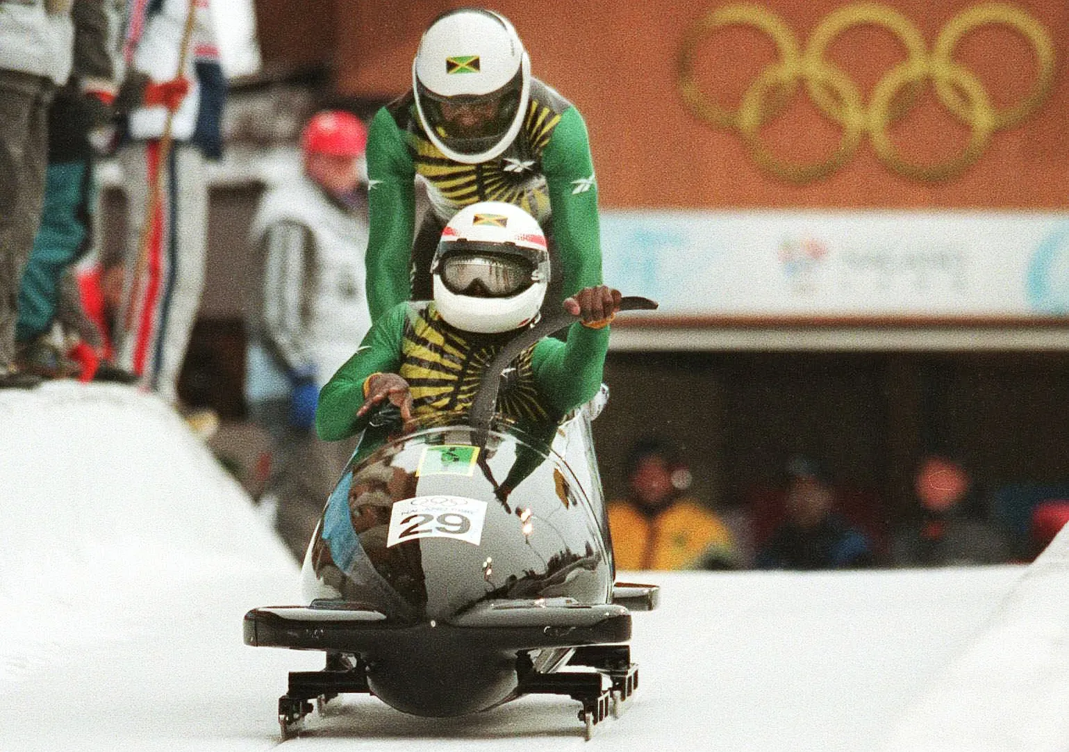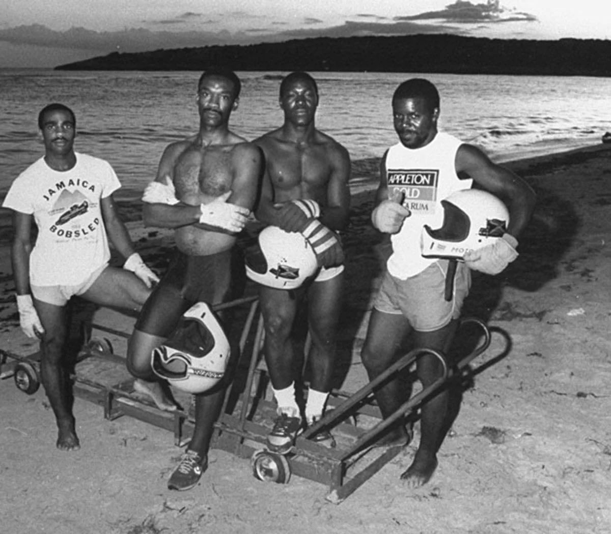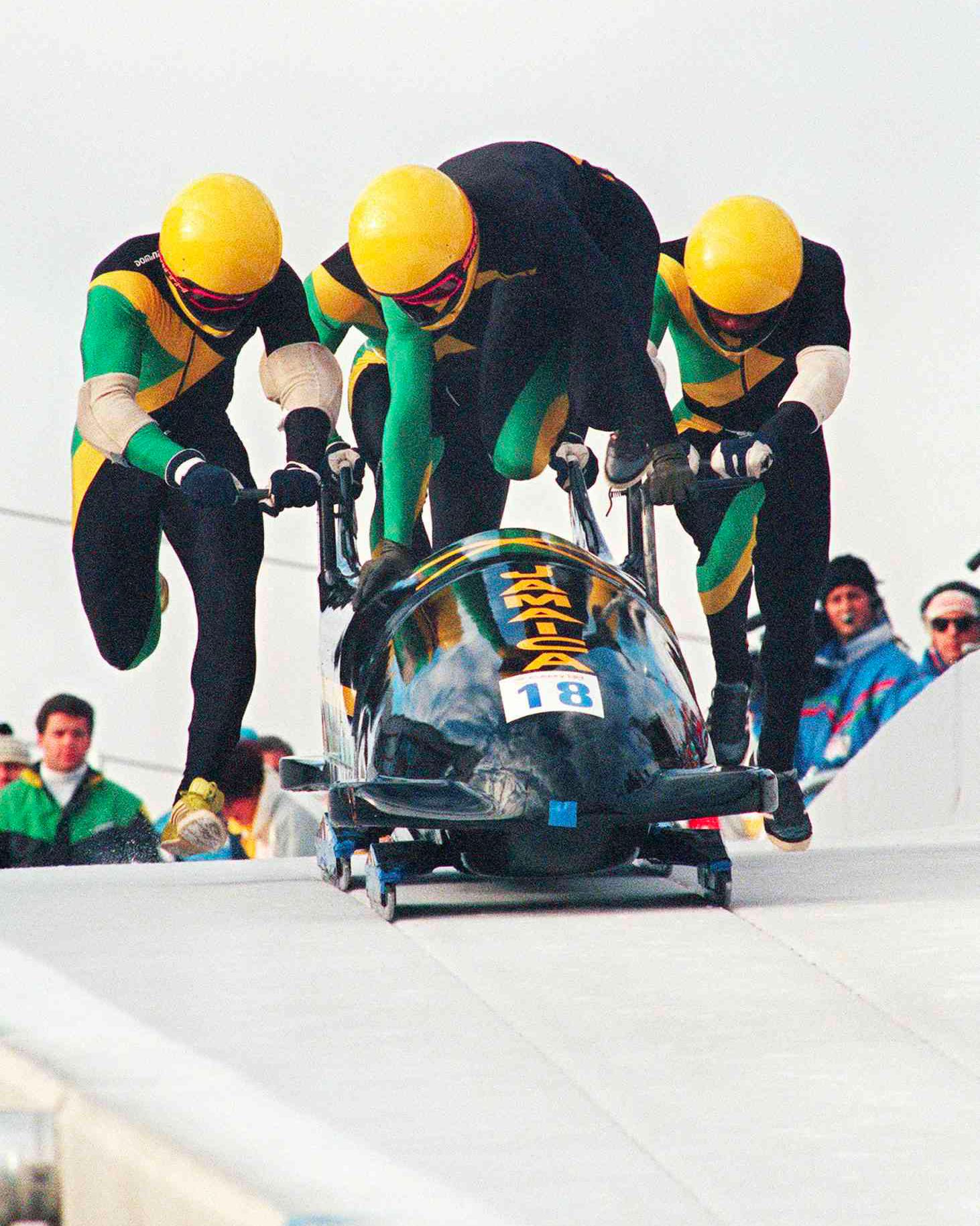 La leggenda, come detto, nasce a ridosso dei Giochi di Calgary del 1988 su idea di George Fitch, commerciante americano di base in Giamaica che rimase impresso da una gara di velocità in cui venivano spinti dei carrelli di fatto emulando l'atto iniziale di ogni gara di bob. Come conseguenza di questa intuizione, venne creata una squadra selezionando i componenti attraverso una serie di provini dedicati a militari che per intraprendere questa carriera avevano abbandonato lo sport. I quattro atleti che si presentarono in Canada furono Mike White, Devon Harris, Dudley Stokes e Sam Clayton Jr.. La vicenda è stata raccontata, in maniera romanzata, dalla Disney nel film Cool Runnings, in italiano Quattro sotto zero. A livello agonistico, come previsto, le performance della squadra non furono eccellenti. Tuttavia, durante la loro ultima gara, la formazione si rese protagonista di un evento ancora oggi ricordato come uno dei momenti più importanti nella storia dei Giochi Olimpici Invernali: il bob a quattro si rovesciò nel tentativo di affrontare una curva. Quando gli atleti si rialzarono, furono accolti da applausi scroscianti del pubblico mentre si dirigevano verso la linea del traguardo.