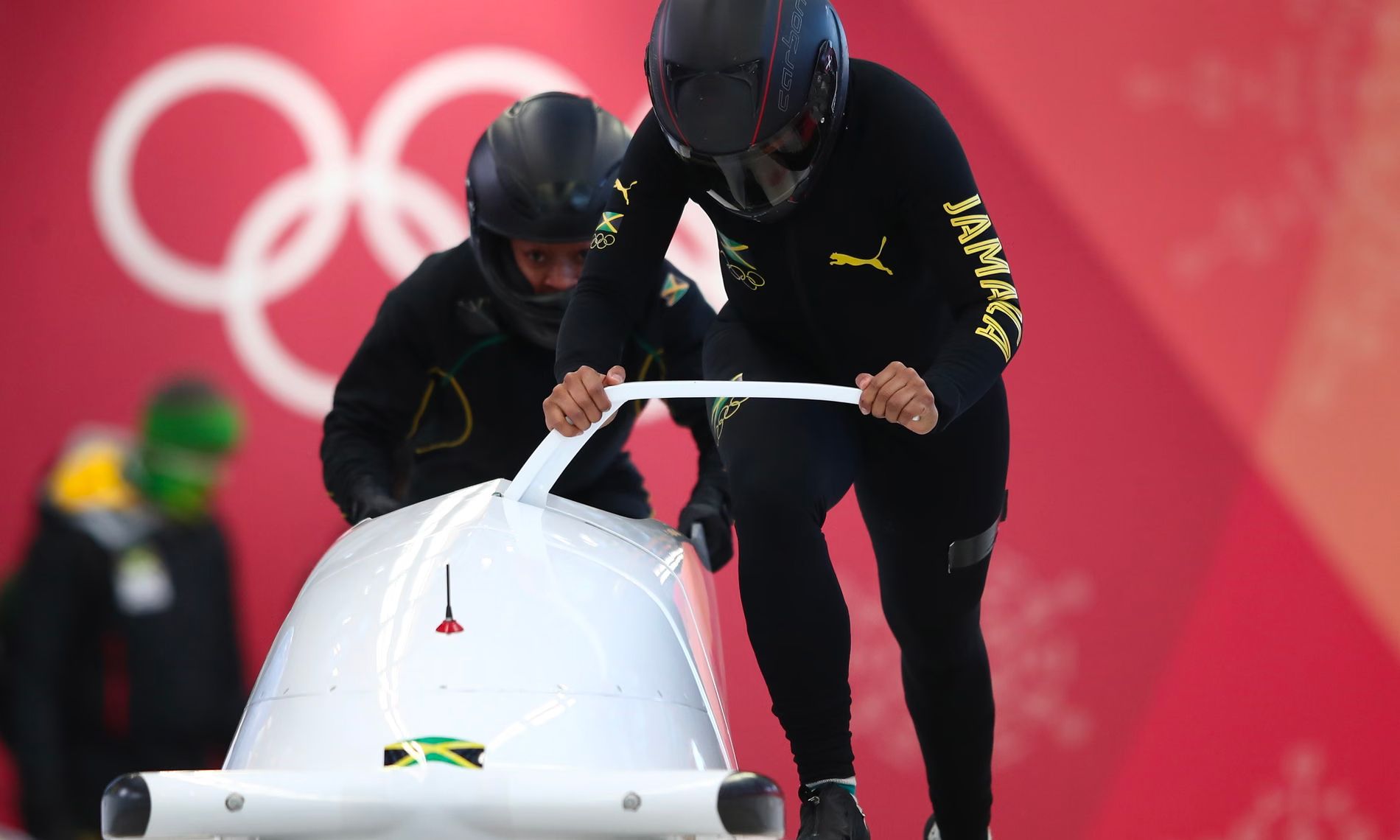 Il 2018 segna un altro momento storico perché per la prima volta, a rappresentare la Giamaica nel bob in un’edizione dei Giochi Olimpici Invernali furono due donne: Jazmine Fenlator-Victorian e Carrie Russell, che per l’occasione sfoggiano una divisa PUMA che sfrutta l’effetto gradiente per creare un gioco di sfumature in cui i tre colori canonici si mescolano senza mai sovrastare e creando un effetto elegante. L’associazione con PUMA si è sviluppata anche a Pechino nel 2022 con una soluzione simile, un kit con effetto gradiente che nella parte superiore sfumava in un pattern geometrico mentre nella parte inferiore creava una fantasia in stile cielo stellato.