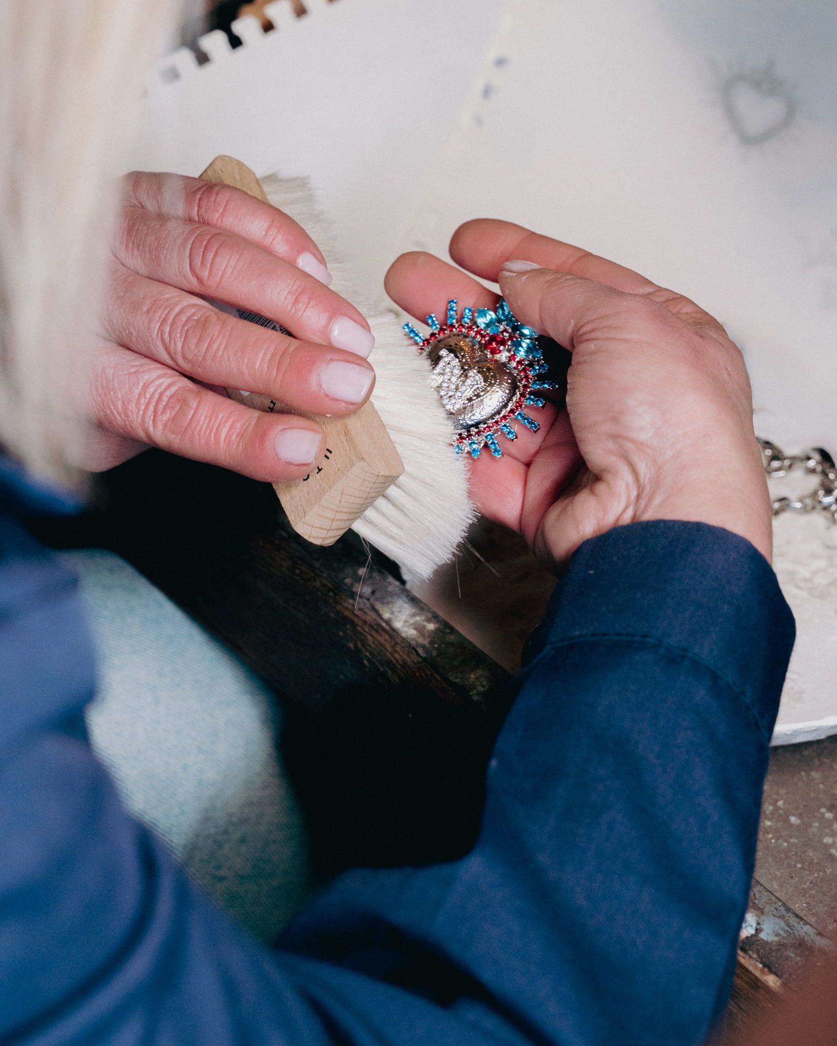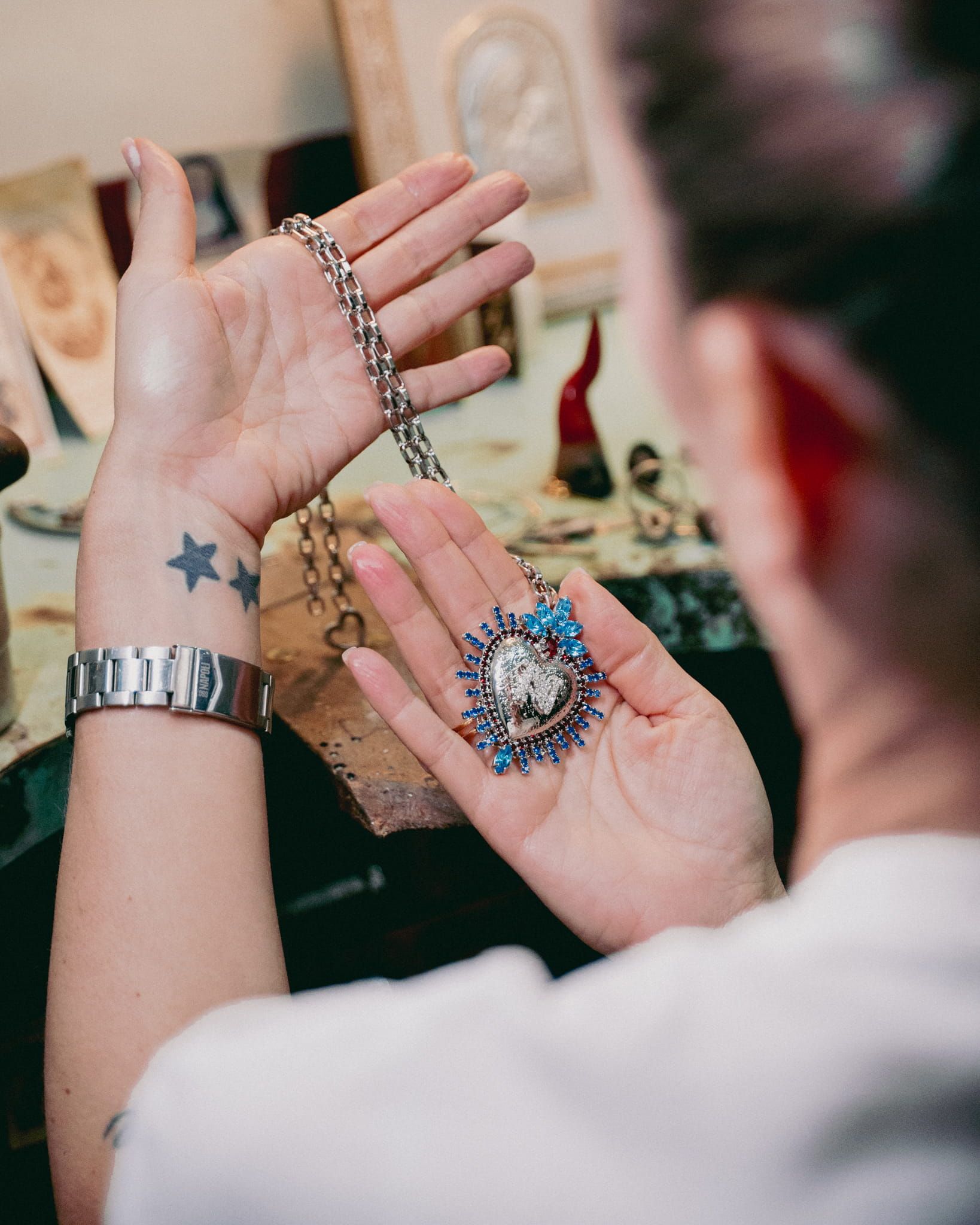 La linea nasce dalla collaborazione con Umuna, realtà creativa fondata a Napoli da cinque donne unite da un legame familiare e da una visione condivisa del fare artigianale. Tutti pezzi sono stati realizzati interamente a mano nei loro laboratori in Campania, attraverso un processo che intreccia ricerca contemporanea e tecniche tradizionali. Il risultato è una collezione che dialoga con il presente senza perdere il contatto con la dimensione autentica del lavoro manuale, trasformando il metallo in simboli essenziali e carichi di significato. Uno sguardo femminile e una visione condivisa: donne che disegnano, plasmano e trasformano la materia in simboli da indossare sulla pelle, dando vita a un dialogo tra creatività, territorio e appartenenza.