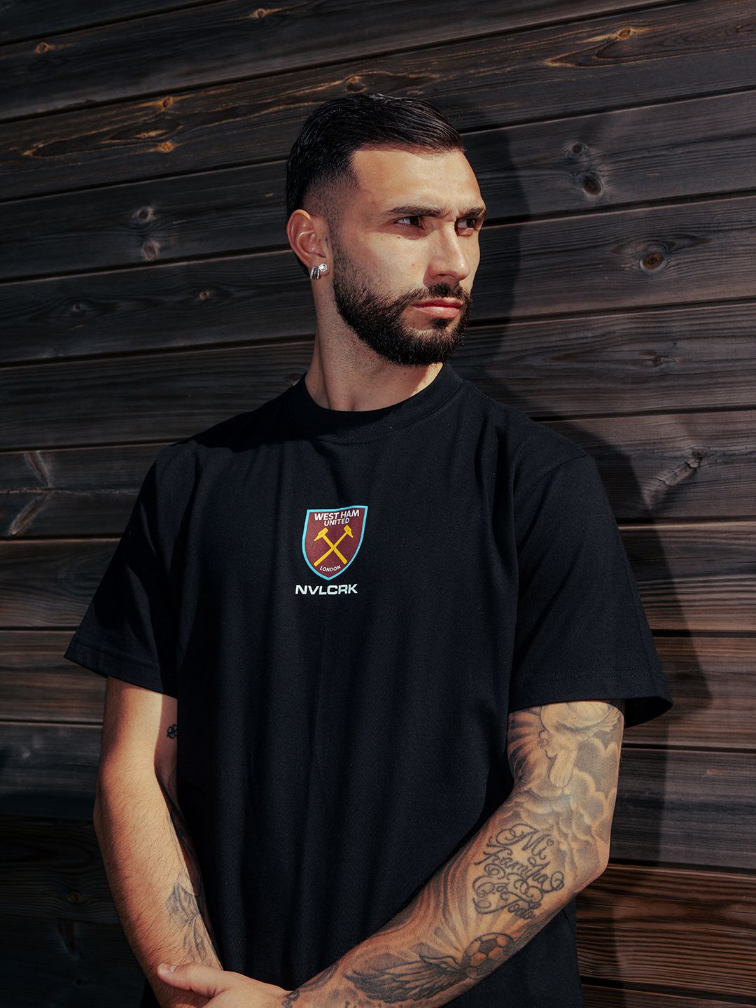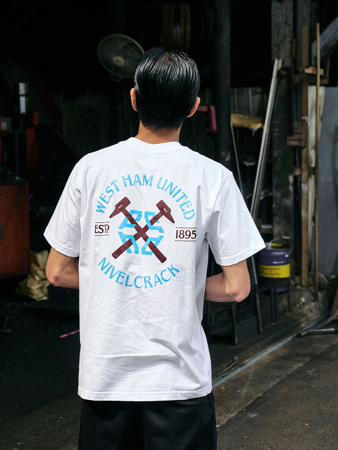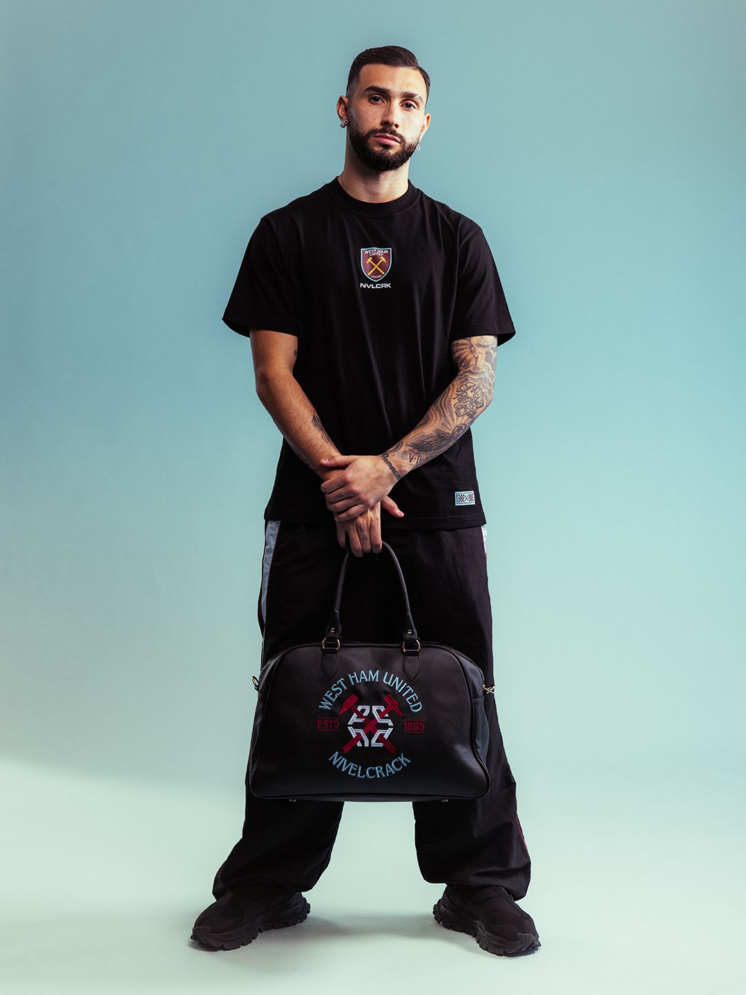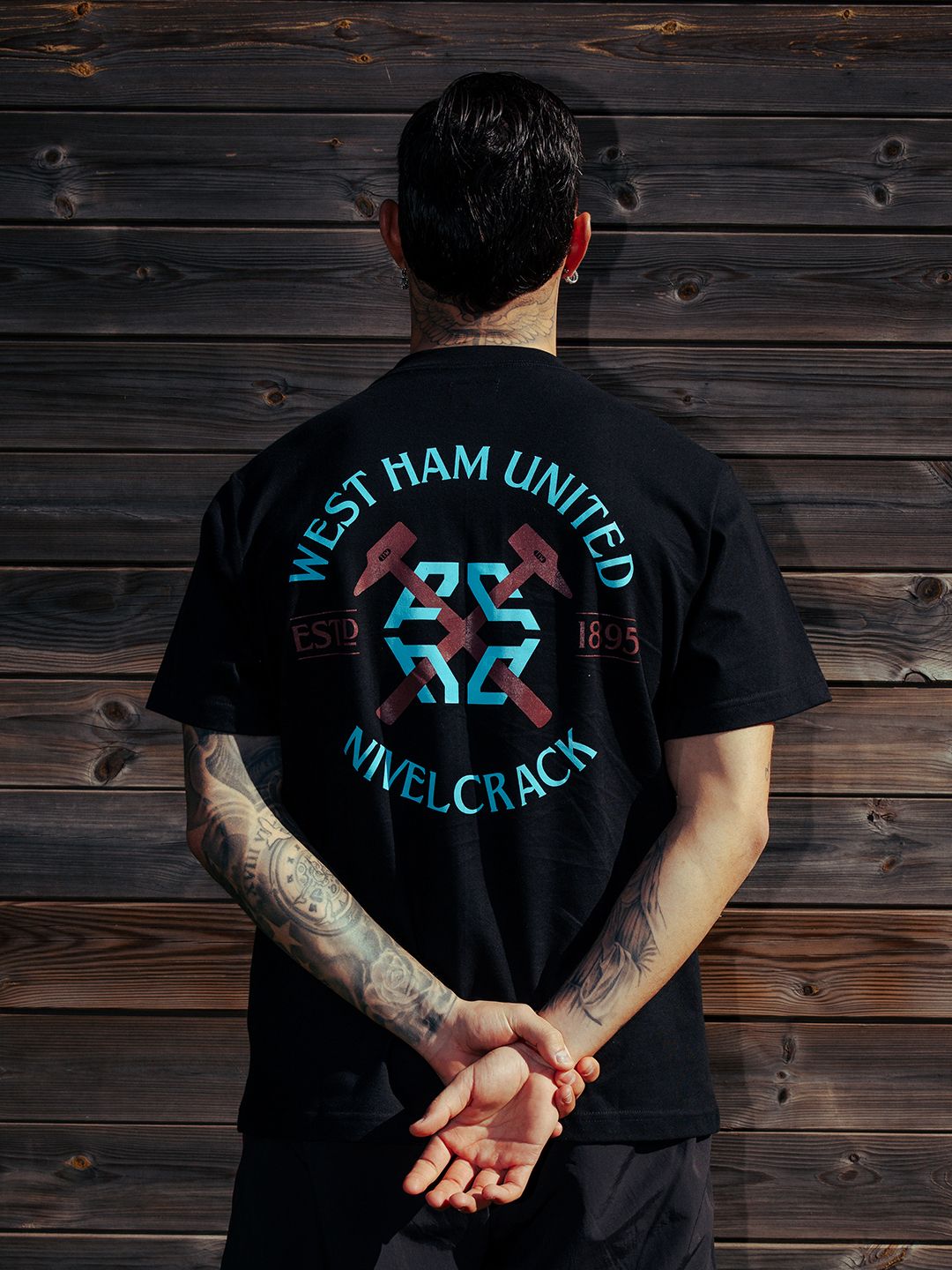 Il cuore della proposta è la reinterpretazione dell’iconico logo dei martelli incrociati del West Ham, simbolo di storia e tradizione, insieme al monogramma distintivo di NIVELCRACK. Il risultato è una linea che unisce heritage calcistico e estetica contemporanea, pensata per chi ama il design pulito senza rinunciare a un forte impatto visivo.