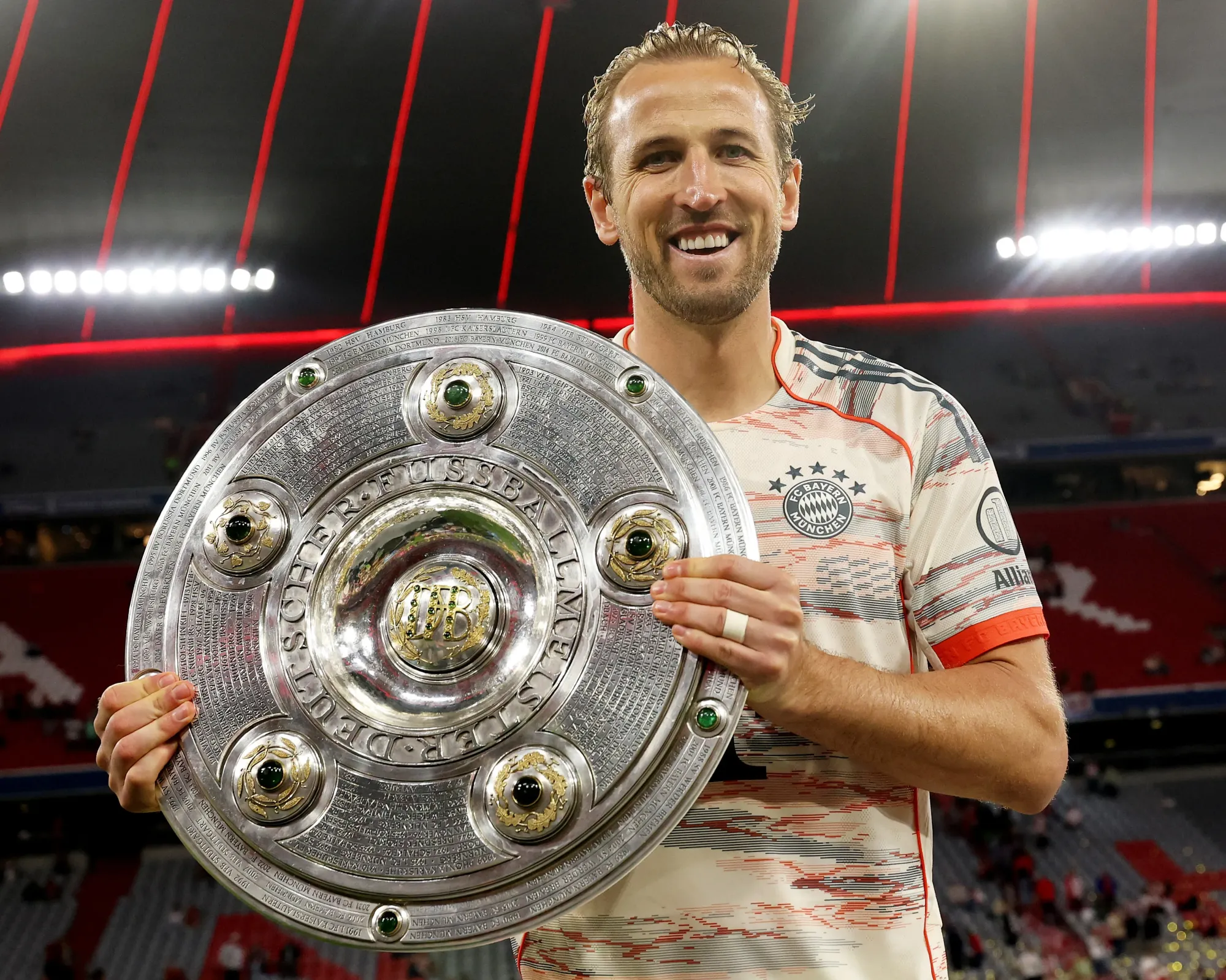 Il Bayern Monaco ha vinto la Bundesliga 2025/26: si tratta del 35esimo titolo nazionale per i bavaresi e in occasione dell’ultima partita di campionato, in programma il 16 maggio all’Allianz Arena contro il Colonia, la squadra allenata da Vincent Kompany riceverà un Meisterschale speciale, più grande rispetto alla scorsa stagione. La Bundesliga ha infatti confermato che al trofeo che viene assegnato ad ogni squadra che vince la Bundesliga è stato aggiunto un anello di argento.