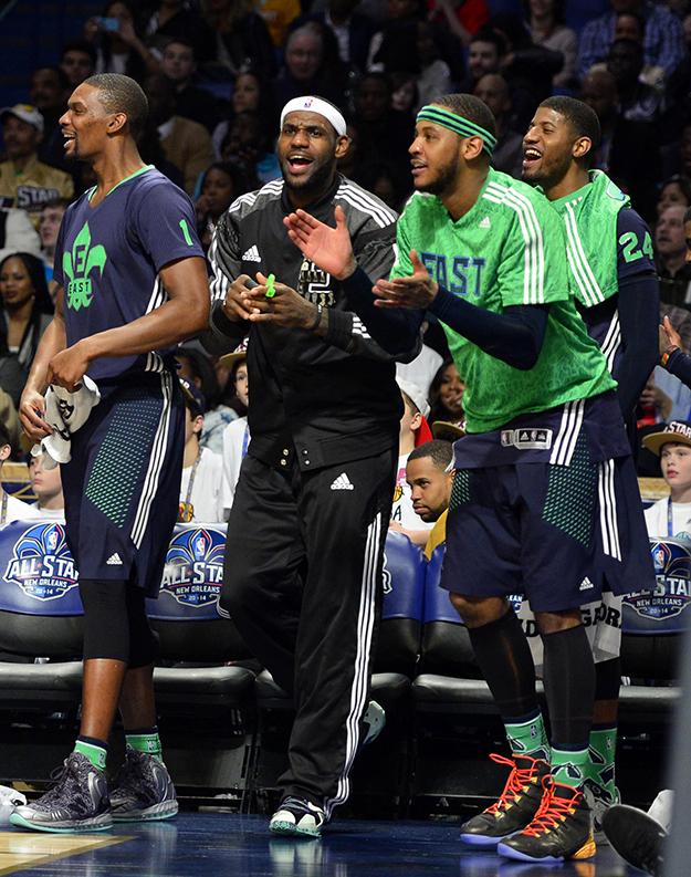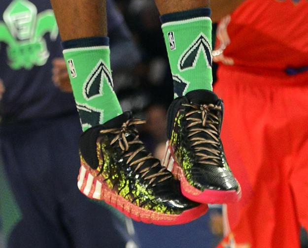 Come al solito le sneakers hanno fatto la loro parte. Notevoli (nel senso che si notavano decisamente troppo) quelle a pois gialli su base celeste di Wade e le Purple Vodoo di Steph Curry. Promosse le Jordan di CP3 e le nuove adidas di John Wall e Noah. Superlative le solite LeBron 11 e le Nike indossate da Kirey Irving, eletto, tra le altre cose, MVP della partita.