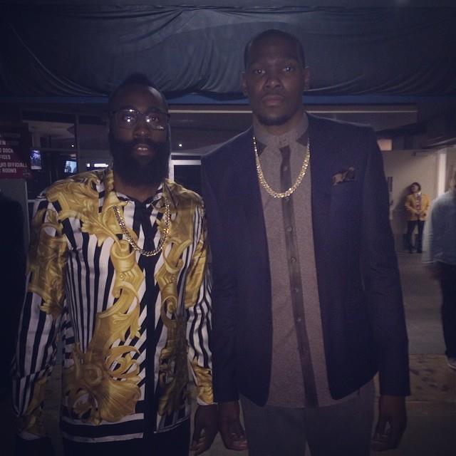 Tanto pane per i denti anche dei fashion hunters. I gemelli dello swag Durant e Harden hanno dato come al solito spettacolo. Sublime il completo grigio di Durant, addirittura accecante la camicia del Barba, che finisce di diritto nella galleria delle perle dell’anno. Non si è tirato indietro neanche King James, mentre più sobria è apparsa la nuova stella di Indiana Paul George. Dopo aver criticato le jersey a mezza manica, dobbiamo invece elogiare i jacket scelti dall' NBA nella presentazione dei giocatori. Classico modello college, arricchito da toppe raffiguranti i traguardi raggiunti da ogni giocatore.