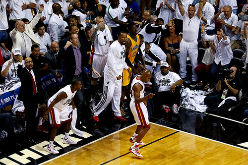 Lascia che ti dica una cosa: ricordi le finali dello scorso anno? Quelle di Tim Duncan in lacrime etc etc? Ecco, è tutta colpa sua, di Ray, e potete giurarci che se ce ne sarà l’occasione, finirà di nuovo in quel modo. (Tutto questo solo per dire che non si dovrebbe lasciar Allen solo a tirare da tre). Se lo fai, l’unica reazione/conseguenza non può che essere questa.
