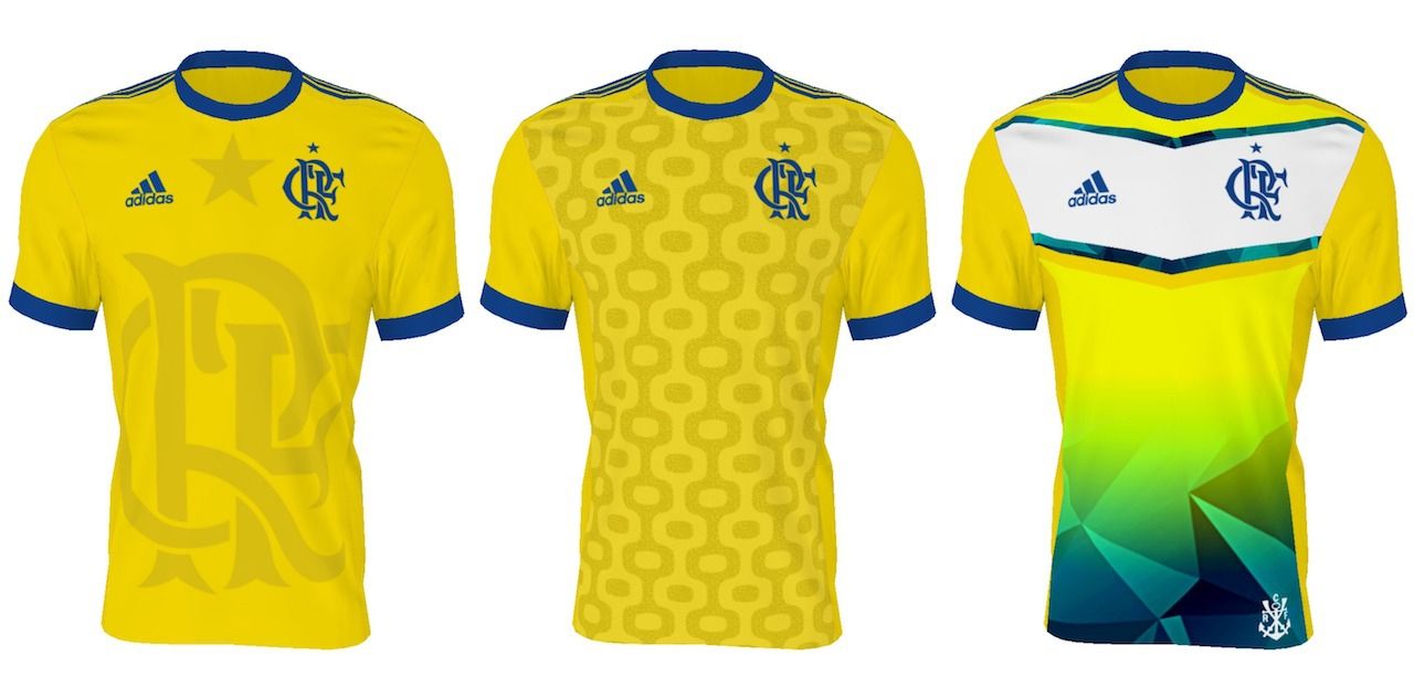 Tra tutti i club in competizione, quello brasiliano era sicuramente il meno famoso (senza offesa), ma non per questo meno affascinante dal punto di vista stilistico. Partendo da una base gialla con inserti blu, molto discostata rispetto ai classici colori sociali nero e rosso, abbiamo selezionato le nostre tre scelte. Uno molto classico, con il logo del club filigranato in sottofondo, uno un po’ più esotico, con un tema molto sudamericano nel background e un terzo decisamente più futuristico, affascinante anche se forse più adatto per giocare sulla Playstation che in un campo di calcio.